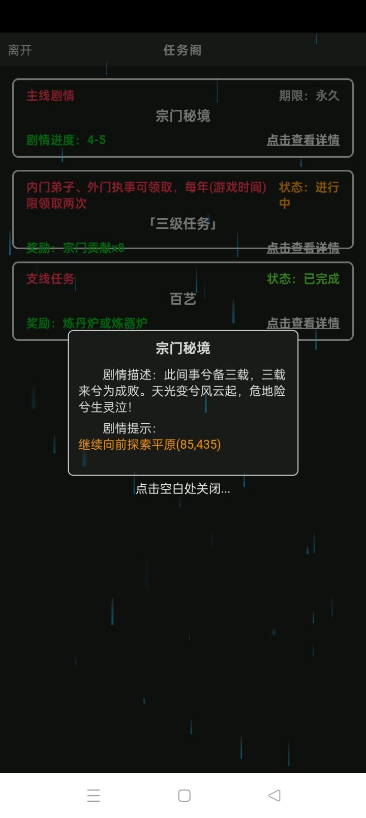 主线任务到这里进行不了了,之前跟陆浔进去过一次宗门秘境,后面卡退出来一次,这个任务就彻底完不成了