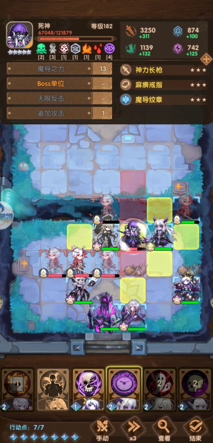 推图推到27-4被电脑死神教育了,但我怀疑电脑挂开多了。1,死神被动直接锁满血在角落里的公主,一个被动无视公主的灵魂替身和防御技能满血秒杀。经多次测试,概率性触发。不是被动的伤害转移,因为我开局去清忍者没碰死神,死神身上也只有一层毒,伤害数值对不上,而且特效就是死神被动特效。2,厄运女神技能封印无效。多次尝试找到一条过关思路,用厄运女神封掉BOSS普通技能后集火搞定,然而BOSS的无限反击照常