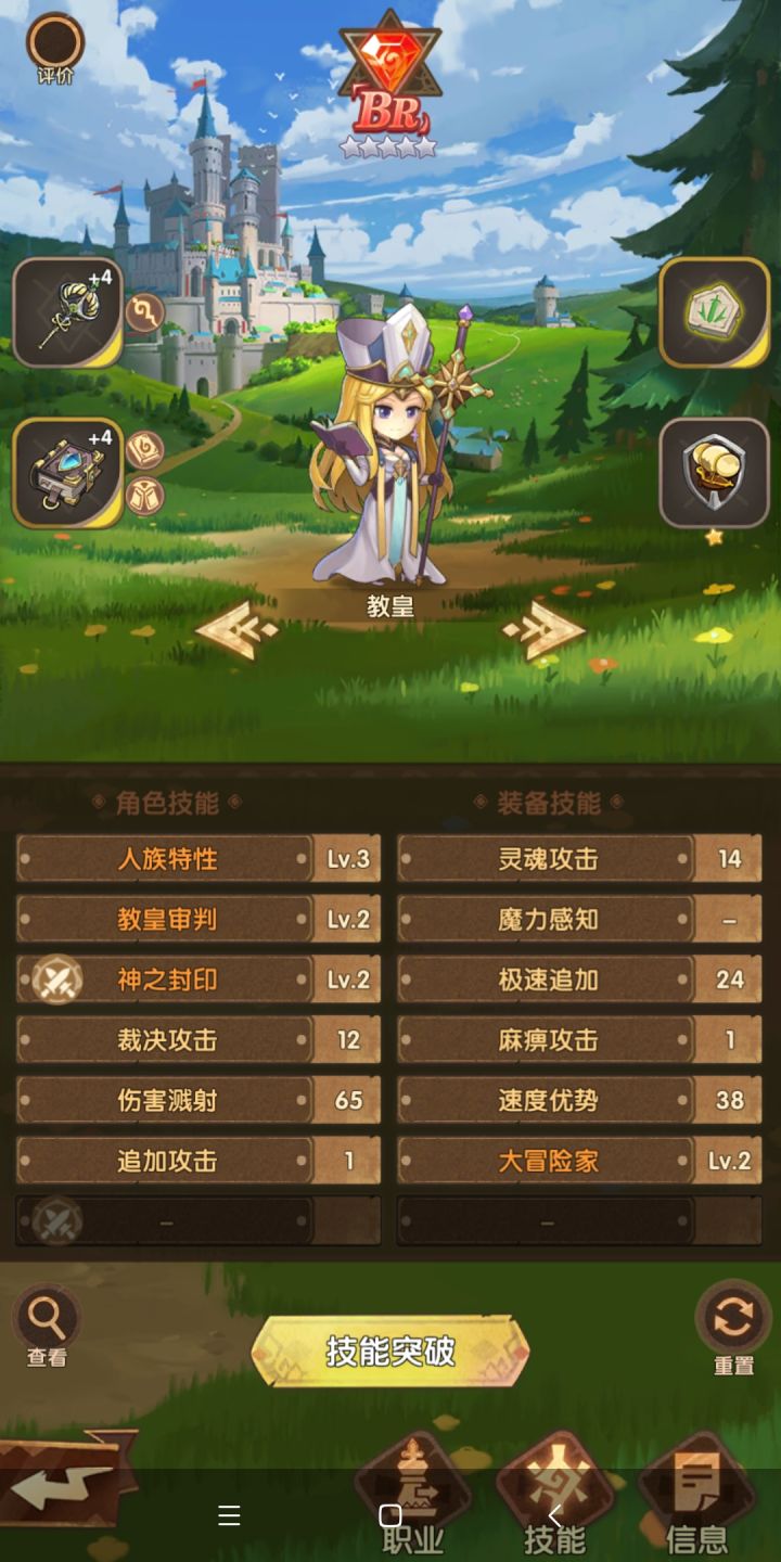 再提一次,趁着人族这波增强,教皇是个专职炮手(没有其他副职业),但是他却没有炮手应该有的弓,这是真的不太合理,技能都还可以,就是这个装备坑了,希望改一下还有就是下面多了一个那个主动技能标准,盲猜进阶或者突破后获取新技能,感觉出的很快,平民玩家不用想了,氪金玩家看着办吧