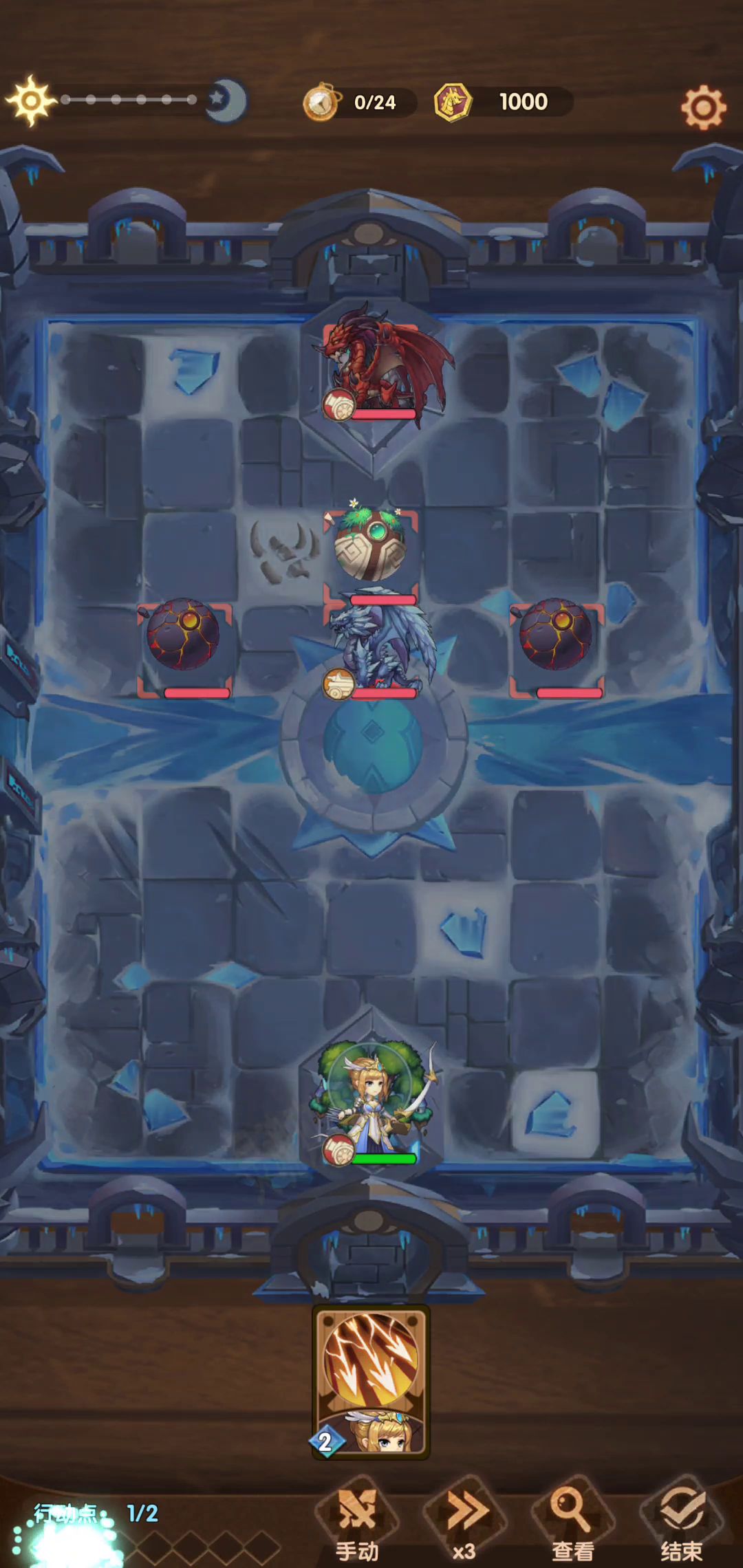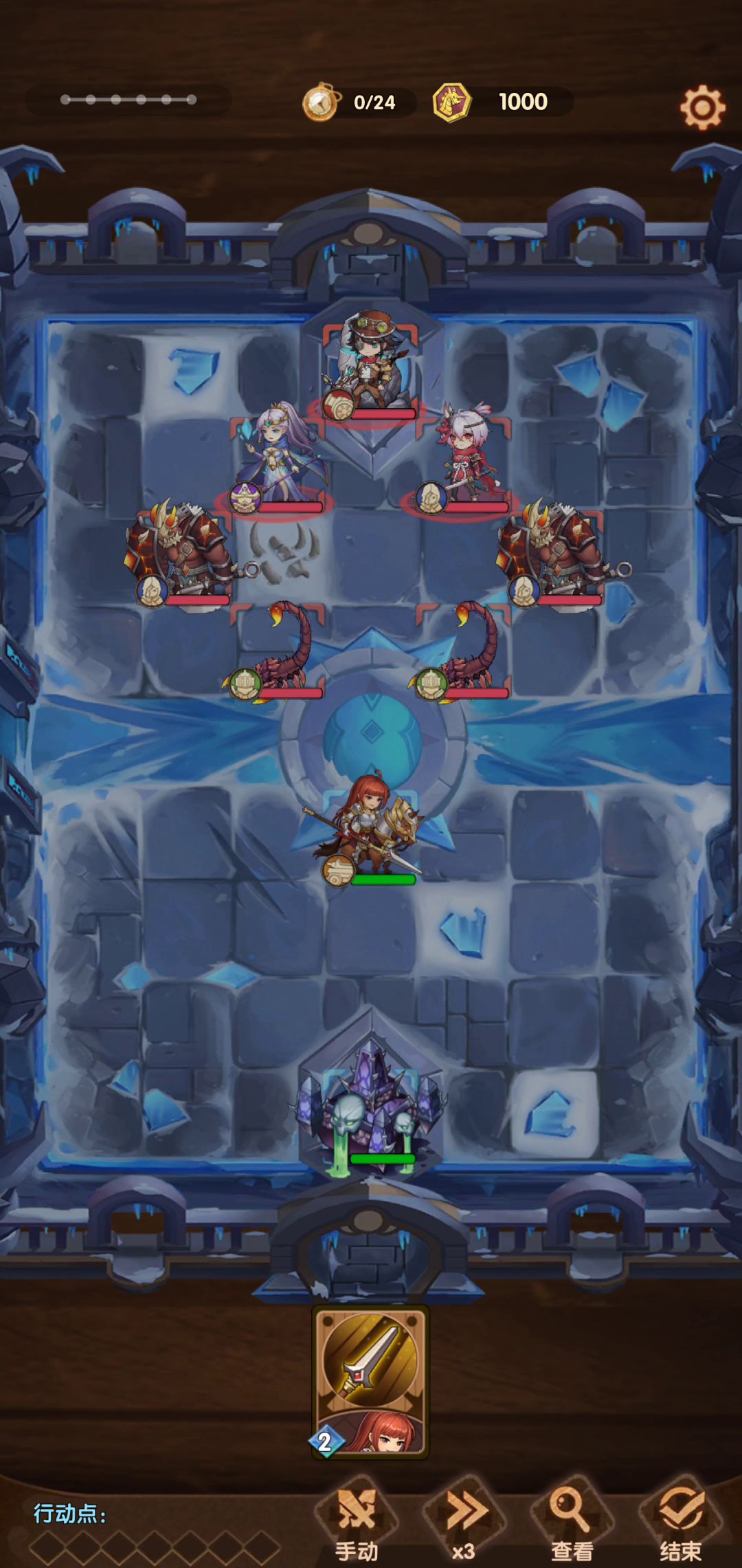 先上场上骷髅骑士吃堕天使大,堕天使会默认大最先上场的,城堡带战士天赋,核心打法就是带一个狂奔战士杀穿。