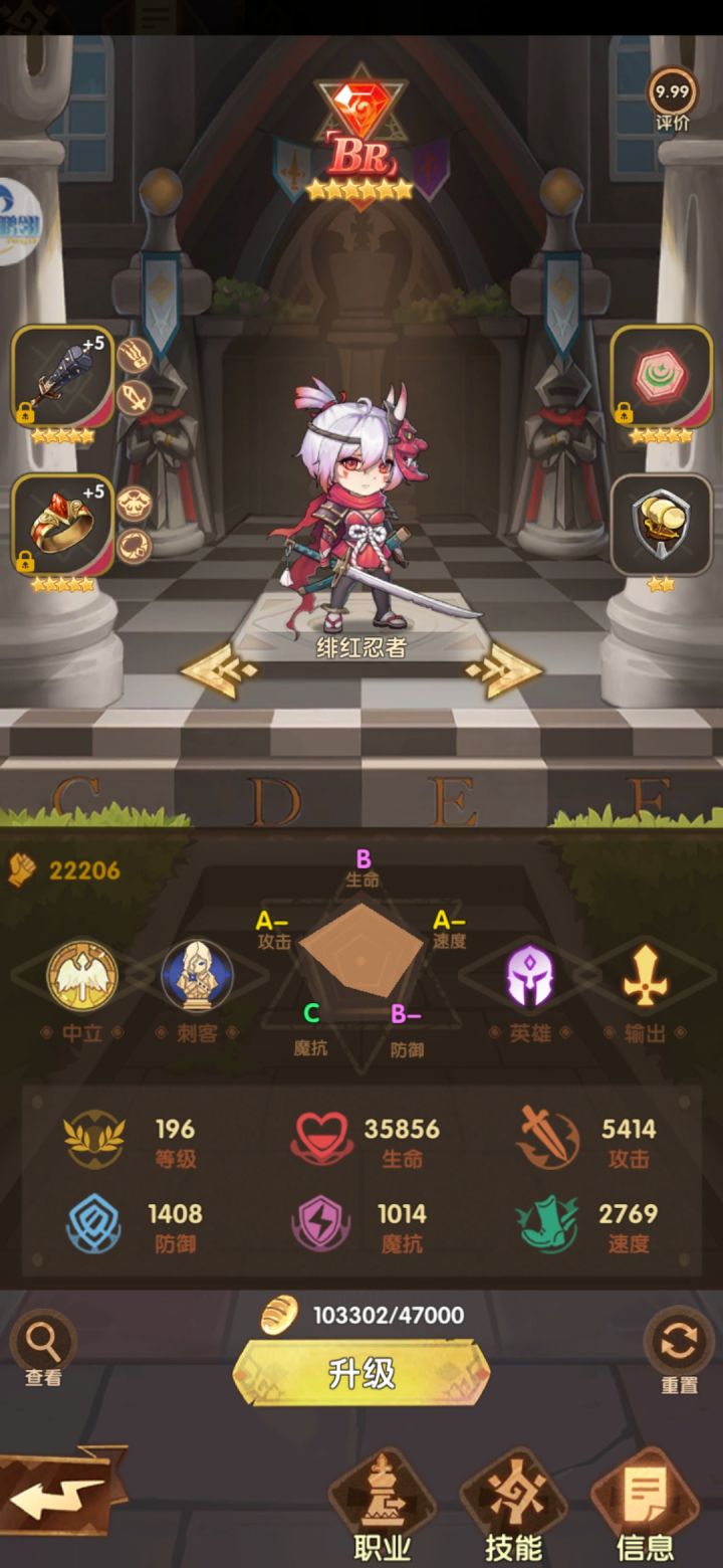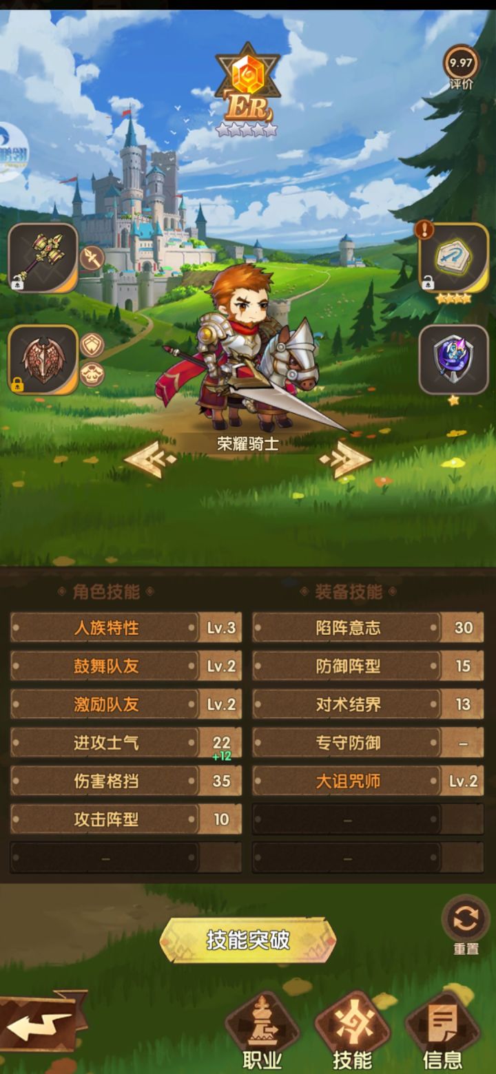 3个5次重生,要控好血量,军团带了暴增, 优点输出稳定 缺点输出力不足,需要收几个人头 注意荣耀,别让他挂掉 人族主角勇者就是个混子,还不如精灵女王