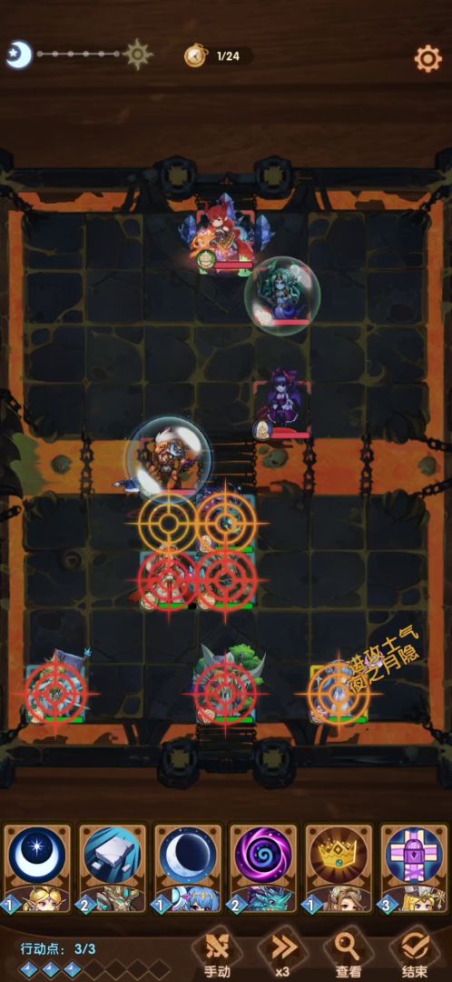 淦他喵的南瓜头本次过关过程中心思想:银月被动守家,防速推主角出输出装备强推城堡(城堡技能虽然有防追加的城堡加固但实际并没有生效)记得主角一定要全输出,一定要全输出,一定要全输出!切记,切记!魅魔和小鹿纯粹是为了速度抢先手,换其他有速度的也行,但是一定要先手!这样才能主角前进一格把南瓜头引出城堡