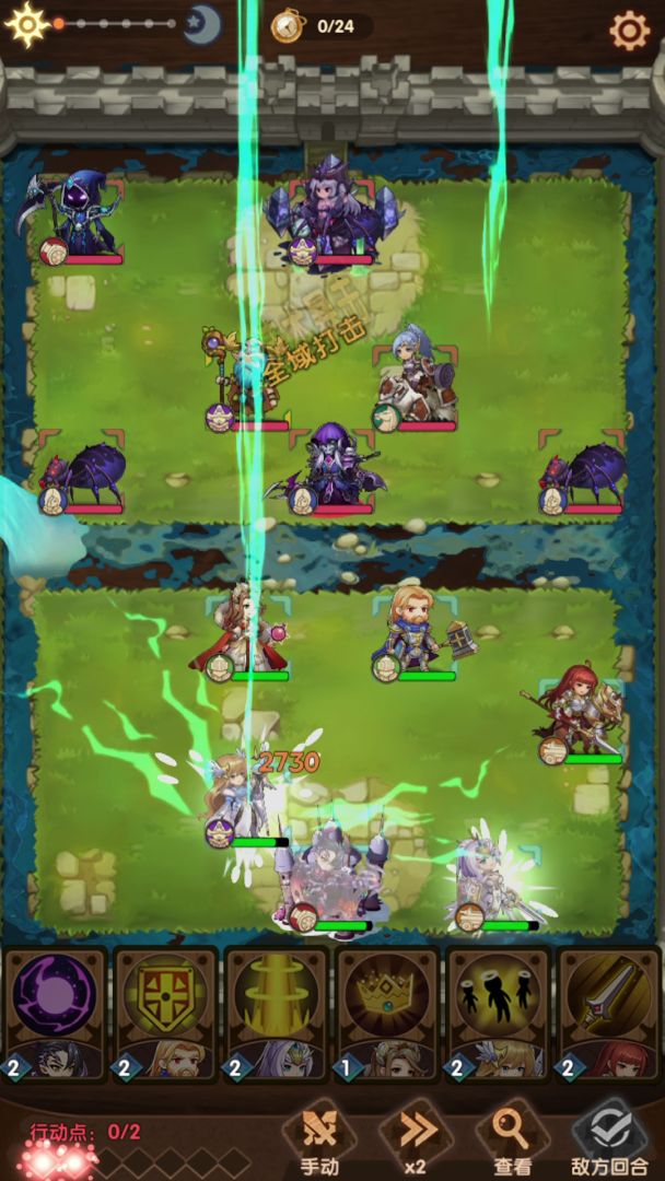 阵型如下,此关要点:速度一定要比对面快,速度一定要比对面快,速度一定要比对面快!主城左右两边用攻击低的护住,开局刷地狱火或者在骑士周围的小怪,换血,炸,死神上去a一下,收割,骑士倒接下去其他人被控制,死神隐身,不被控制。然后死神一路上去砍死死灵,然后就简单了。