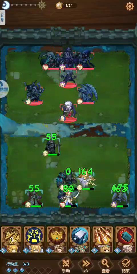 3骑3战,骑士城堡。需要开局凹2个暴击。另外,如果角色都200级会轻松不少。纹章徽章分配如下:军团:力量增幅+力量增幅,弱点大师勇者:削弱攻击+攻击弱体,大诅咒师圣骑:魔法领域+高速咏唱,治愈大师舔狗:进攻士气+防御士气,大冒险家皇后:血量增幅+魔抗增幅,防御大师末日:魔力感知+高速咏唱,管理员补充:军团洗了一条恶魔特攻