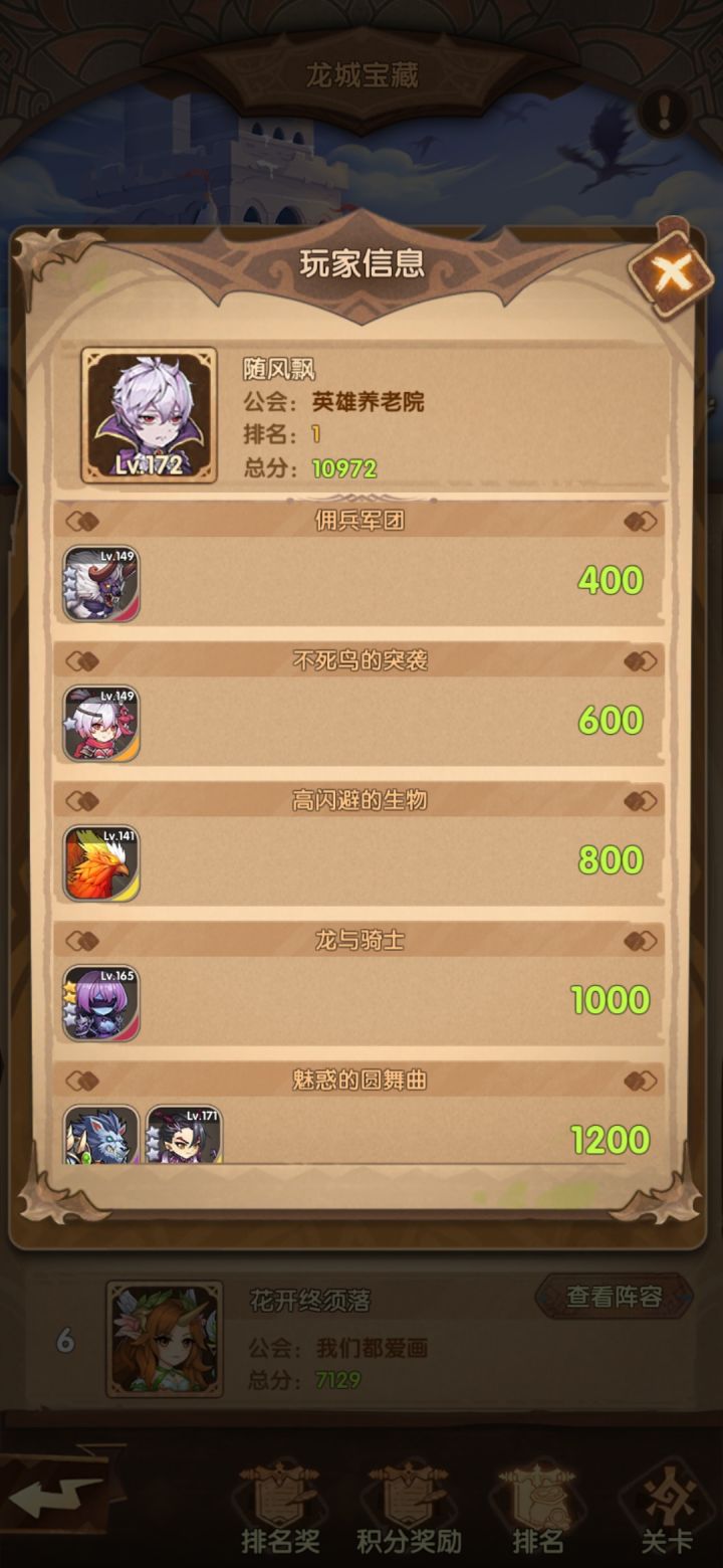 先介绍下楼主情况:2区普通月卡玩家,目前龙城12500分,暂排第一这期龙城活动其实对新手玩家很不友好,10000分奖励要求必须在240级本和210级本选一个过,其他关分还不能低,但是回合过7就开始扣分极大加深难度,为此楼主建议 新玩家(7天以内非重氪)拿3000冲6000,2周以上普通玩家争取冲10000,有练度有理解很自信的小伙伴可以尝试冲13000,本文先简单为萌新介绍前面几关关键,再主