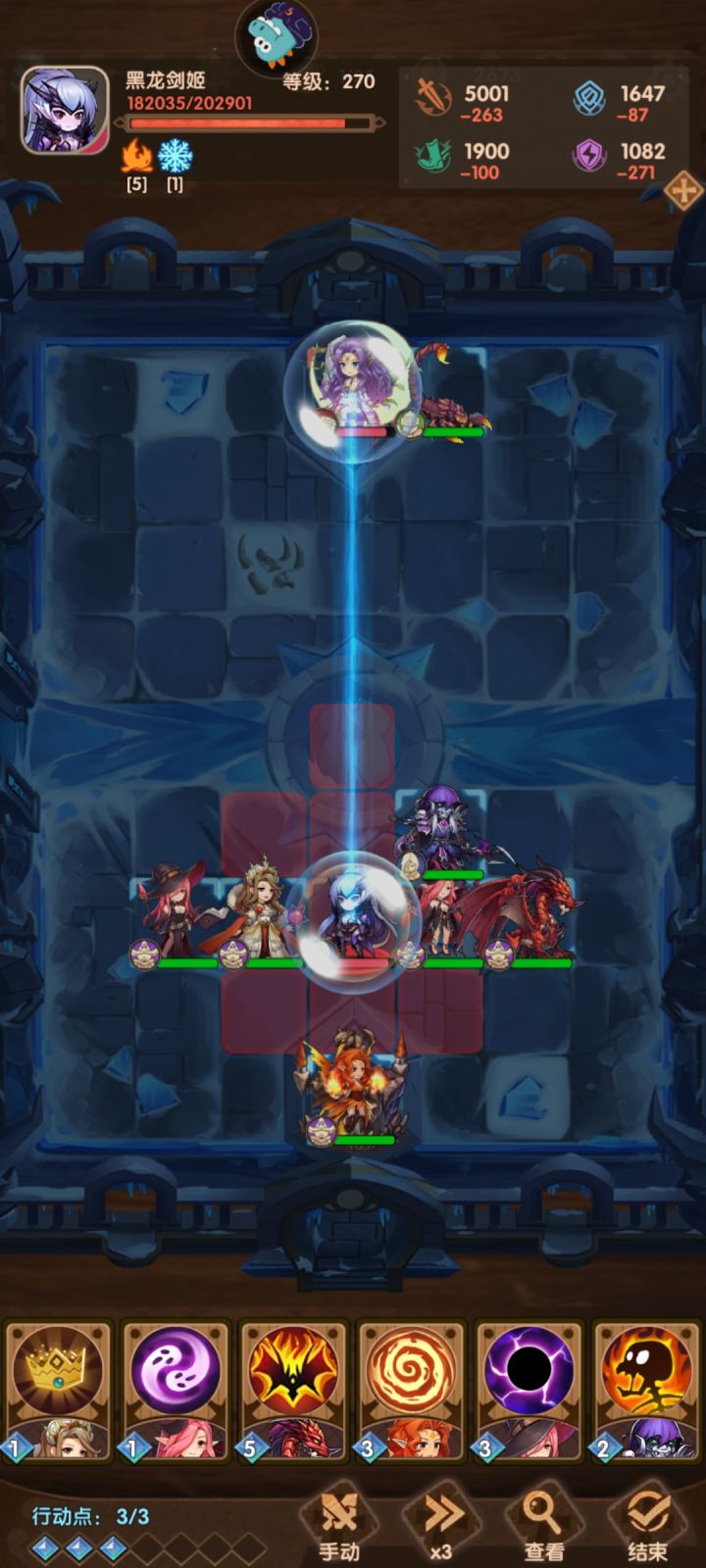 目标保底6000 争取1w阵容 高练度只有精灵老规矩关卡倒序魔化黑龙骑(2700/2700)如果遇到开场打出分身或者蝴蝶溅射 直接重开解法一:6致命火城堡带一级法师攻击距离+1的技能保证花妖第一个上场 固定左下角 这样boss固定飞到花妖右边全员带大火阵+致命火 先进行平A的人额外带削弱防御+冰冻攻击+火焰攻击带GM称号的厄运公主诅咒boss所有人依次平Aboss一次 记得一费