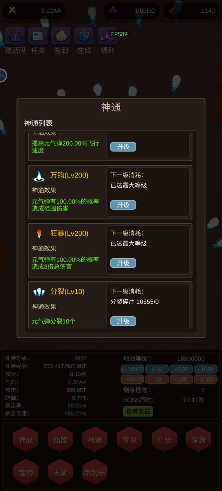 @青狮 请原谅我用了破解版存档…神通全是满的…不过bug复现了…打不到boss…复现完bug之后我已经把存档删掉了,因为我确实喜欢这个游戏,想要从一级开始好好再挂一把[表情_斜眼笑]希望你能尽快做出完美的游戏,加油