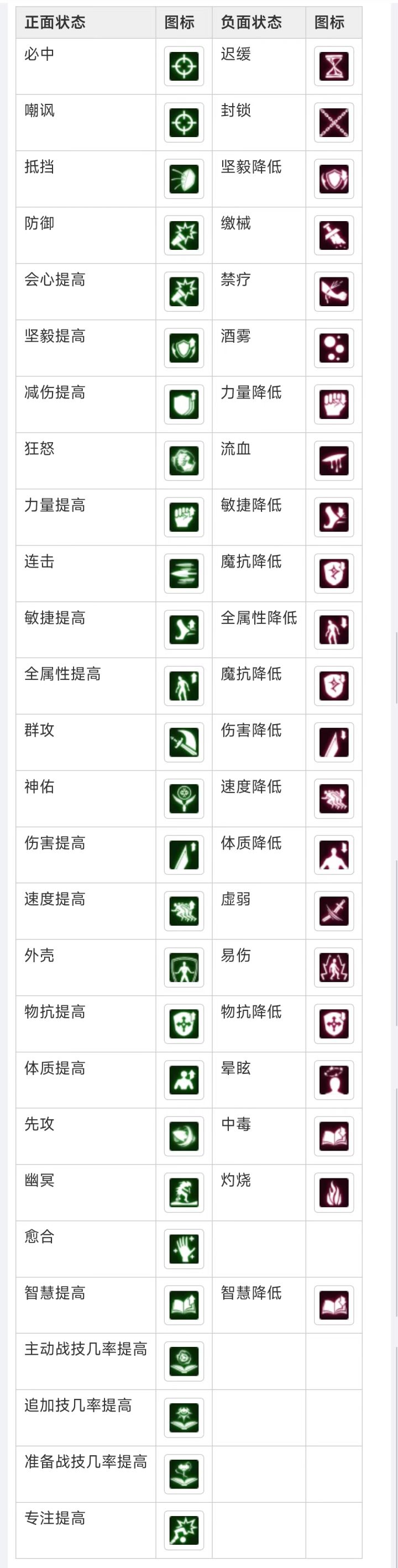 游戏中有许多的BUFF图标,有时候一个小小的buff将决定战场的结果。熟悉buff图标,是一个萌新进阶高手的必修课。让我们一起看看,游戏里有哪些buff。(本帖只认图标,具体状态信息转移:正面BUFF详解 与 负面DeBUFF详解)【清单】#攻略