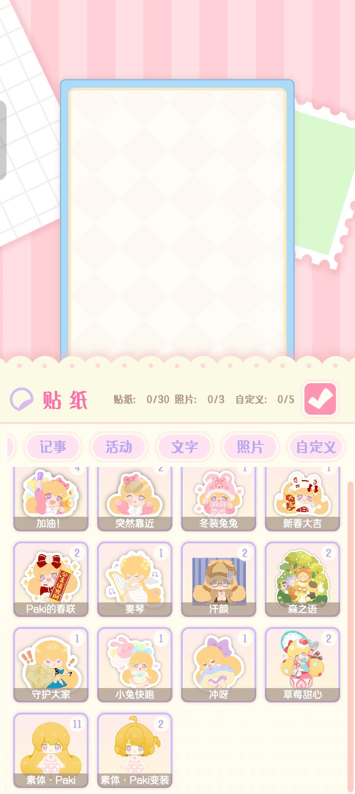 买了两个uno素体贴纸和一个paki的蝴蝶结贴纸,都找不到了,但是手账本上还能看到uno的贴纸