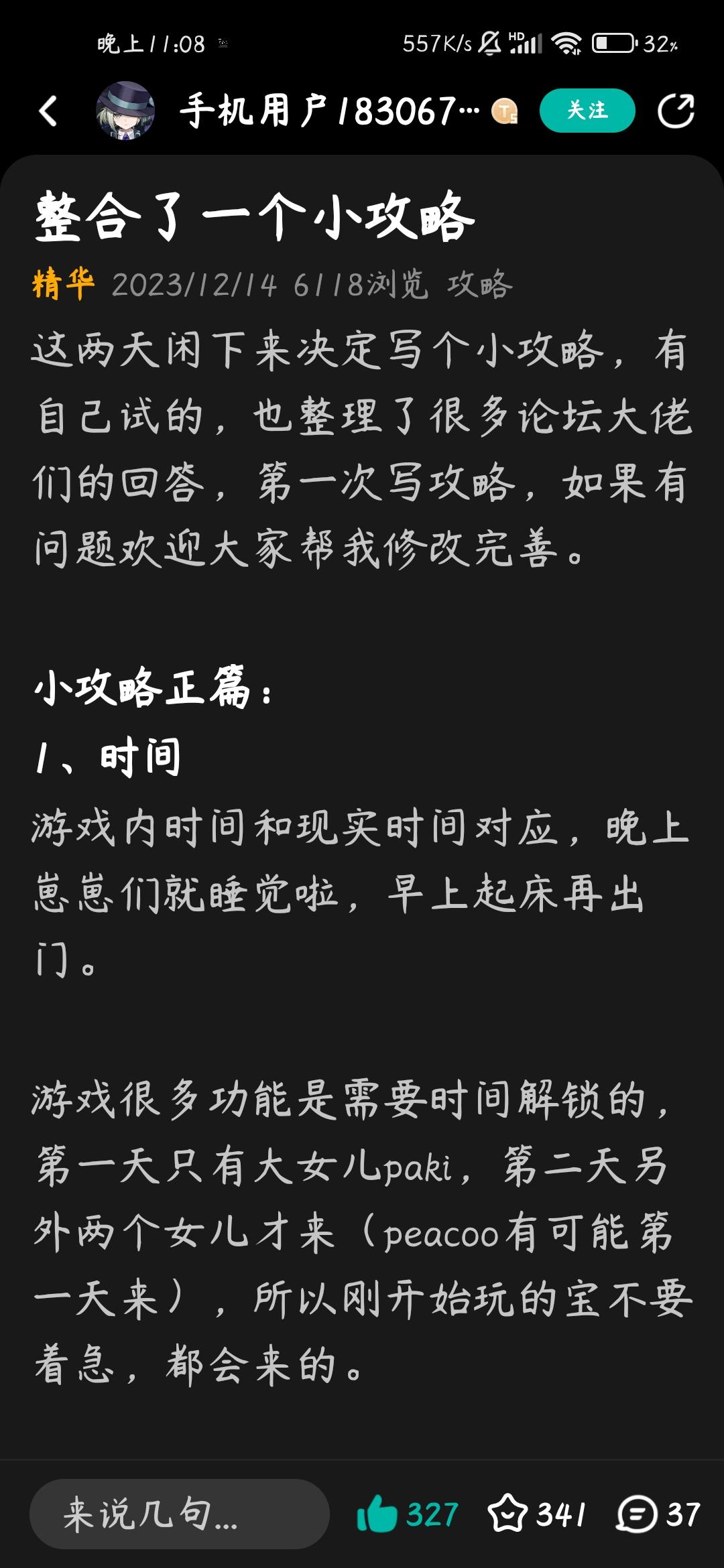 我今天下午刚下载的时候呢,是有一个小朋友,晚上10点多左右的时候又有另一个小朋友。我玩之前还看了一个朋友分享的攻略,还挺全的