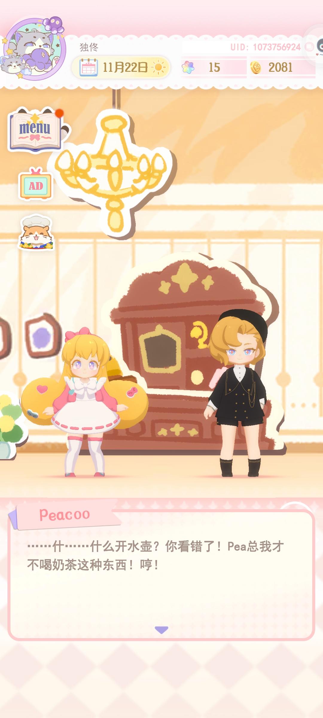 我刚刚点了两下猫猫,它跳了起来,我觉得好玩,多点了两下它给我报了几个金币,有多少不知道,反正就是有,我没看清,反正是从1400多到1522了。