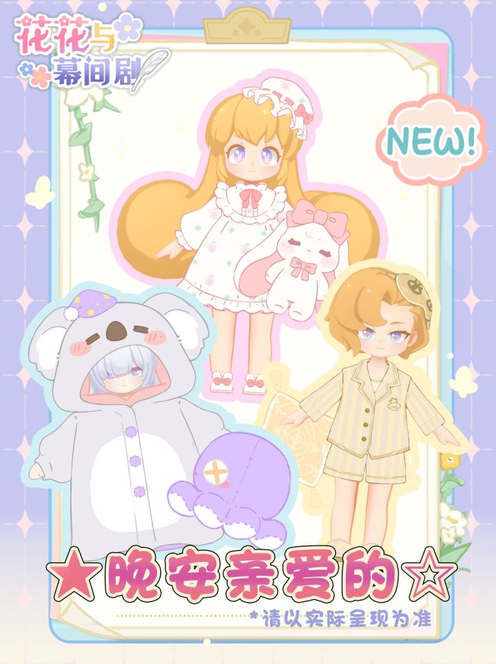 可爱睡裙、萌萌垂耳兔;清爽小短裤和尽显privilege的流苏抱枕;毛茸茸考拉连体服和蓬蓬八爪鱼~崽崽们的爱好表露无遗!同时,签到爬楼活动再临!记得在本帖中留言(任意关于花花的内容),即可参与~每晚12点准时开奖!*睡衣新品尽在火速制作中!请以实际效果为准~*P.S.此次版本更新后,未开启TestFlight自动更新的ios用户可能会无法登陆游戏~若无法登陆,可在TestFligh