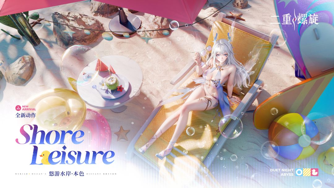 藏一缕阳光和一片沙滩在心中吧,这样走在哪里都是夏天。✦ 全新展示动作「悠游水岸·本色」、「悠游水岸·白樱」、「悠游水岸·黛蓝」、「泡泡泡泡鸭」现已悠然上线。✦ 在【商店】中消耗【虹色棱镜】兑换获得————————✦ 12月23日「幻想风多维战斗爽游」-《二重螺旋》大型资料片华胥「大风歌·上」已上线:https://www.taptap.cn/app/388717✦ 新境启幕,万象雕琢皆成