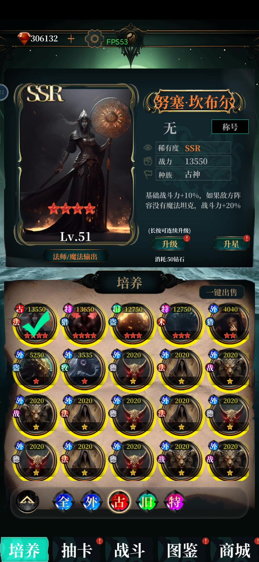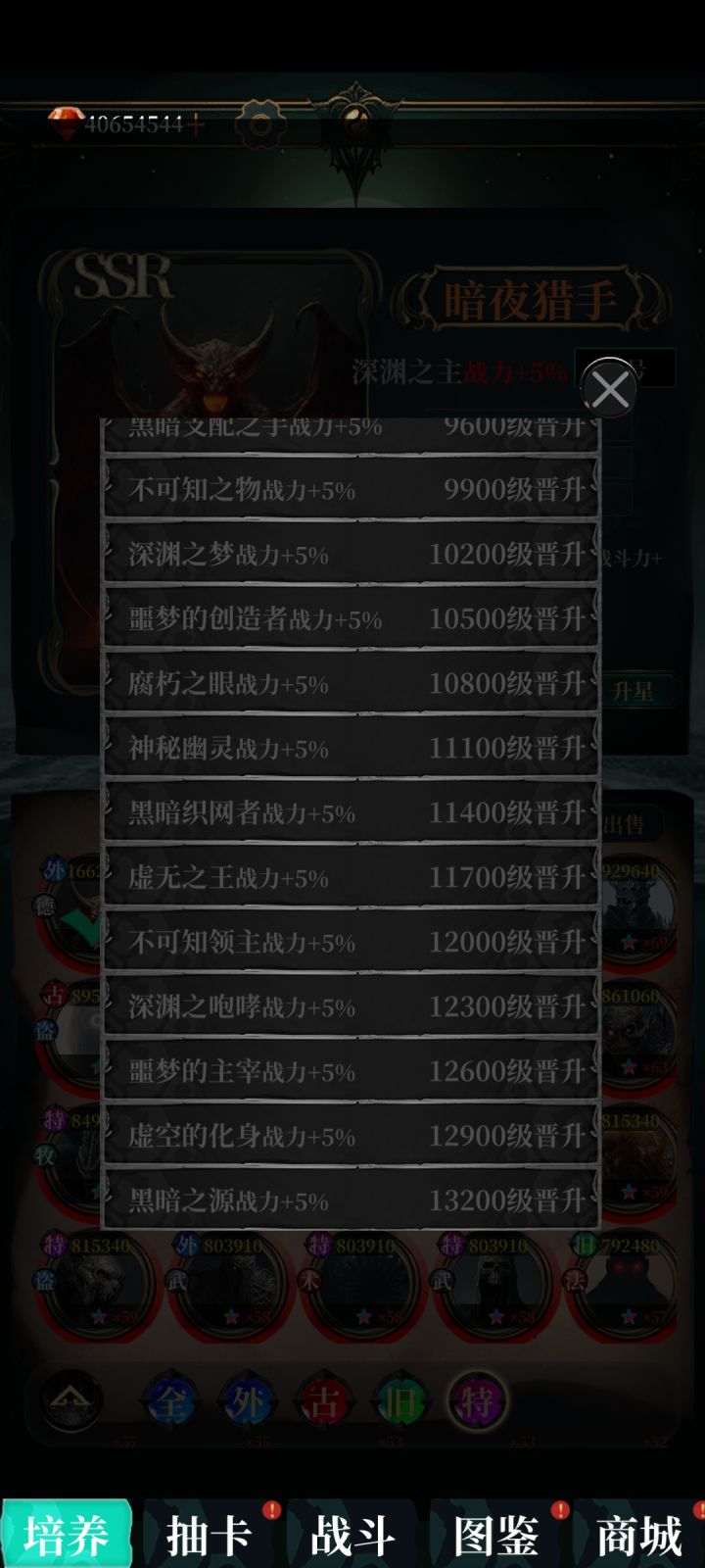 这游戏看来星级是无限制的,每次升星特别卡,卡牌等级能看到的是13200级,但是升级只能一级一级点上去,并且点快了特别卡,长按可以连续升级,但是特别慢,总得来说体验很差。