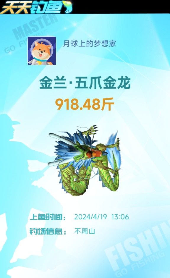 这是我掉起来的一条金兰·五爪金龙,重918.48斤