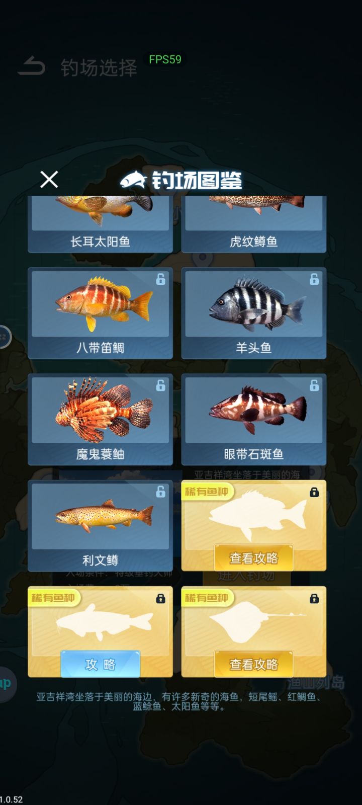 论坛里大佬的攻略经常提到鱼谱,但是很多萌新都没找到(也包括一开始的我)。其实就是钓场选择上面那个图鉴按钮(图片上方红圈位置),点进去是钓场图鉴,显示此水域全部鱼类(图片中间部分)。已钓上的鱼显示名字和图片,未钓上的鱼没有名字和图片,只有框和剪影。已经钓上的鱼,再点一下相应的鱼就能提示钓法攻略(图片下方部分);未钓上的鱼,可以看广子解锁钓法攻略。关于助理,我是最近几天开始玩的(注意发帖时间),现在