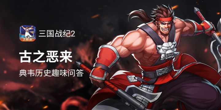 古之恶来典韦即将登场与各位见面,随之而来的是新的技能机制——嘲讽及反伤,相信很多小伙伴都已迫不及待想要了解一番。乔妹搜集了关于他在史上的一些资讯及秘闻,快来了解一下吧~了解完典韦的史料及秘闻,快来回答以下关于典韦的问题吧!题目1:在典韦相关的人物关系中,和许褚的组合被称为______?题目2:典韦的左手武器重达多少斤?题目3:典韦在京剧中的脸谱是什么颜色的?【活动规则】评论区留言你们