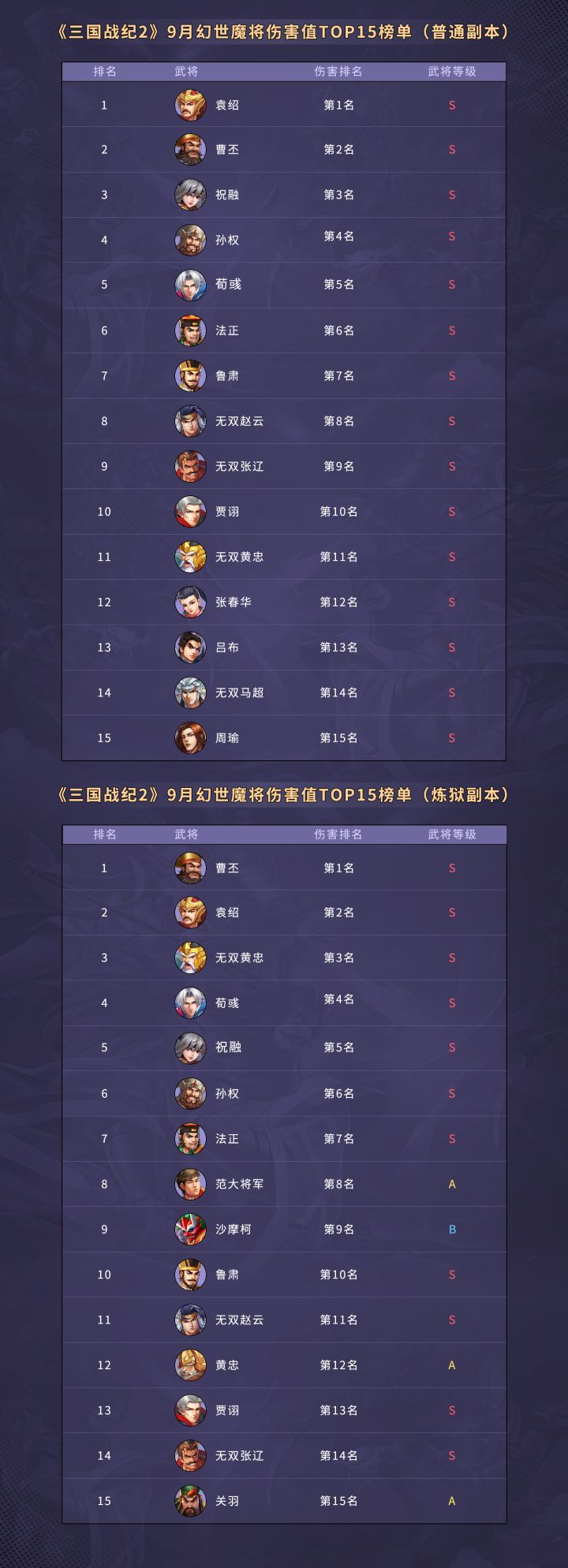 《三国战纪2》9月PVE副本排行榜