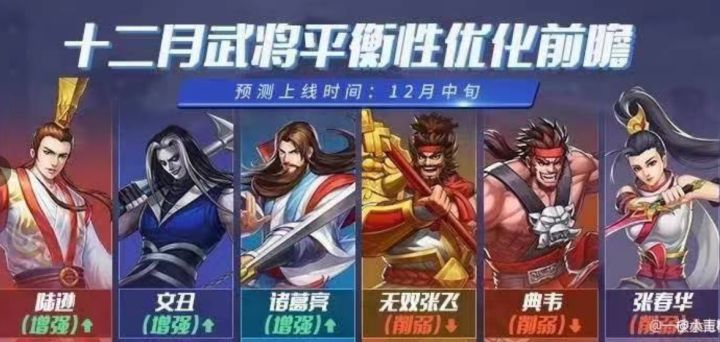 从近期先遣服体验来看,包括前段时间我们一直在用的“血牛莽汉”打法的代表——无双张飞和典韦,以及“竞技场常青树”张春华等武将喜提削弱,老牌但一直没啥牌面的S将诸葛亮、陆逊、文丑则被增强,尤其诸葛亮,三国第一智将不知道这次加强后上场率会不会提高。这一波除了诸葛亮外基本属于典型的PVP武将强度调整,可以预定一定会对排位赛玩法产生影响。一、削将后的现状如何? 这一轮武将的强度调整受影响最大的莫过于无双