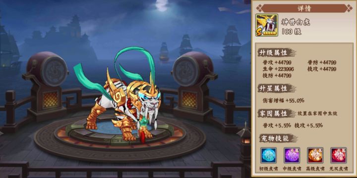 神兽白虎一出,各位主公又可以精神抖擞鏖战各大副本了。对于呼声极高且特色鲜明的新宠物——神兽白虎,不少主公应该已摩拳擦掌,准备入手了。今天,攻略组就来简析下该宠物的特点以及如何搭配武将、阵法使用才能发挥最大功效。一、白虎主要特点 (一)高阶宠物:从白虎的升级和升星属性看,与卯兔一样,属于“更高阶宠物”,属性实力强过雷雀、灵鹿、龙龟等宠物,属于可重点培养的新宠物,其对战力属性的加成更高。举个极端点