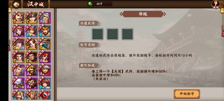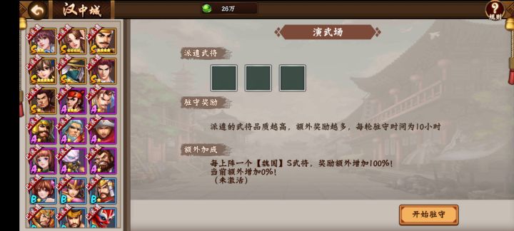 如图所示—闲话这个玩法类似于收菜游戏,在限定时间种下武将而后获得报酬觉醒丹期间会获得各种小惊喜礼物。攻略:怎么才能取得最大收获,就像国贰过关斩将完美胜利通关一样需要规定条件。汉中城获得觉醒丹建议如下1:会分为四大阵营吴.蜀.魏.群武将每个据守点会有提示请注意看。2:播种也就是武将级别分为SAB其次为冠星。3:每十个小时一个收菜觉醒丹回合,因为时间不确定所以建议每次上线都看一下汉中城有利于知道。最后