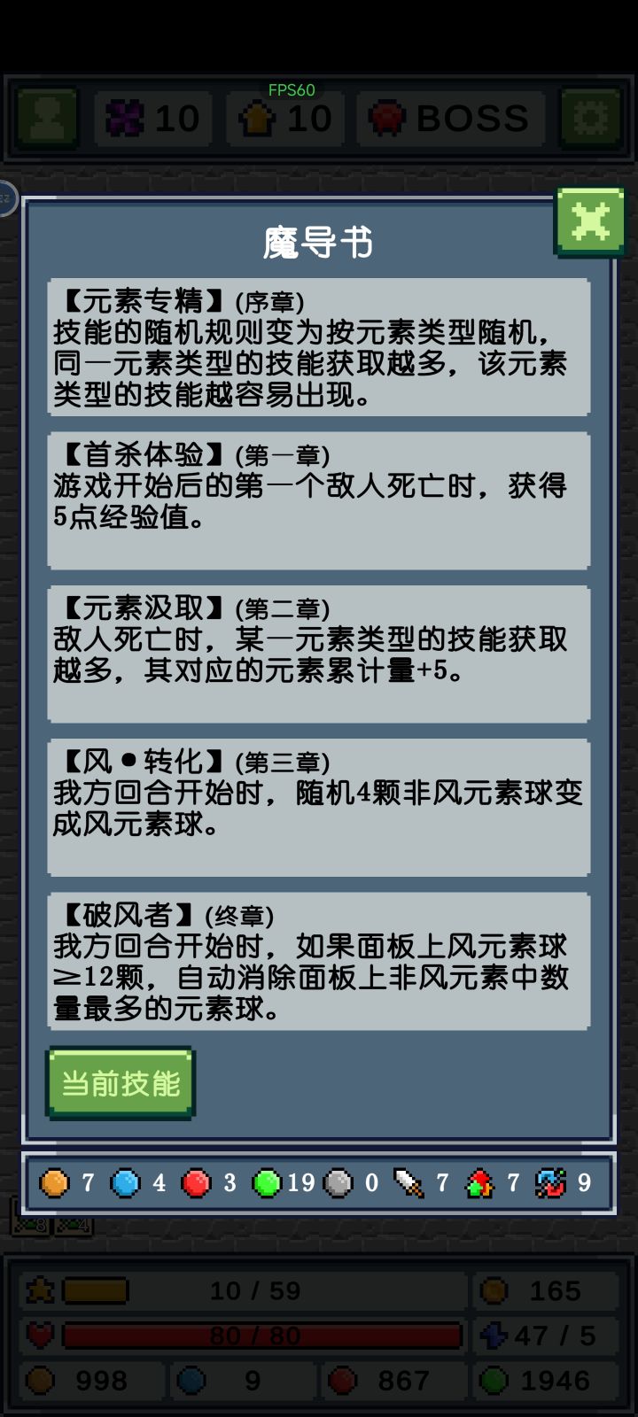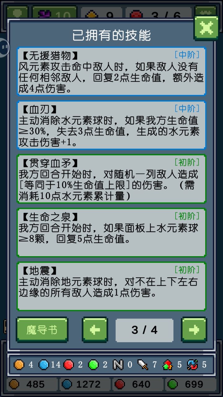 开局一直点消耗火元素累计(伤害为主)的技能,差不多了就可以把热浪推进(火命中加步,消耗20风元素累计)点出来,这时候你的风元素在异·魔力的加持下是足够支撑起一次20点消耗的,后面就是一直点火元素(1个也行,反正打伤害一般靠的是各种技能而不是火元素球本身)。 魔导书和技能都放在视频后面了。