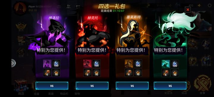 这个界面是六元买角色,和下面看到的道具吧,购买成功了角色怎么没有?退出重进也没有???