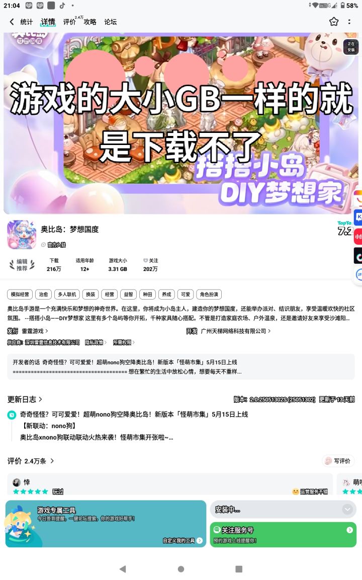 呵呵呵,气死了找过客服了他说让我重新下载安装根本不行,呵呵#下载不了下载不了 #奥比岛梦想国度 #浅评一下 #游戏杂谈 #今天游戏圈发生了啥