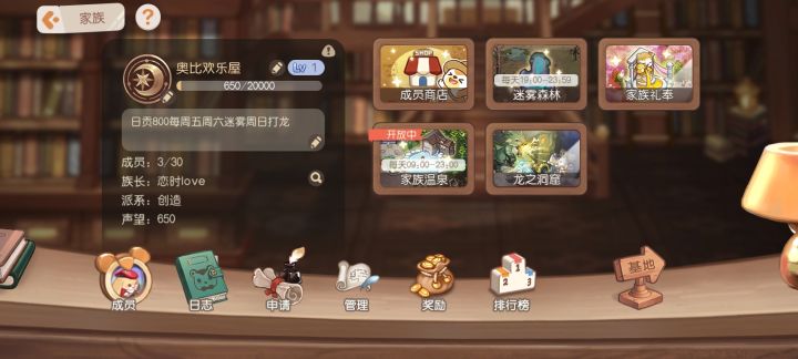刚创建的家族,不嫌等级低的小奥比们可以直接申请,不踢人