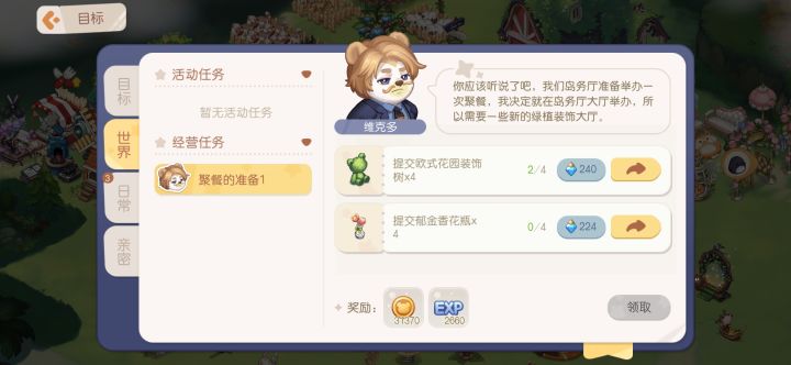 25级,真的很惨,为什么变成了建岛游戏,我想对于普通玩家来说比较肝了,微氪一百多,每天铁矿亚麻都拉满,完全不够用,订单搞满20次,交易也挑自己需要的抢到封顶,不懂下一步要干嘛,攒了不少钱,结果今天这任务一下子就穷了,任务要求升级工厂啊,升级一个就五万多,一共升级两个,给金币算一起才五万多一点点,我大写的栓Q,前两天在倒羊皮,现在一直在倒怪味豆,来钱快,我真的是,再缺钱也没卖过家具,毕竟还要做十万的成就,救救孩子吧