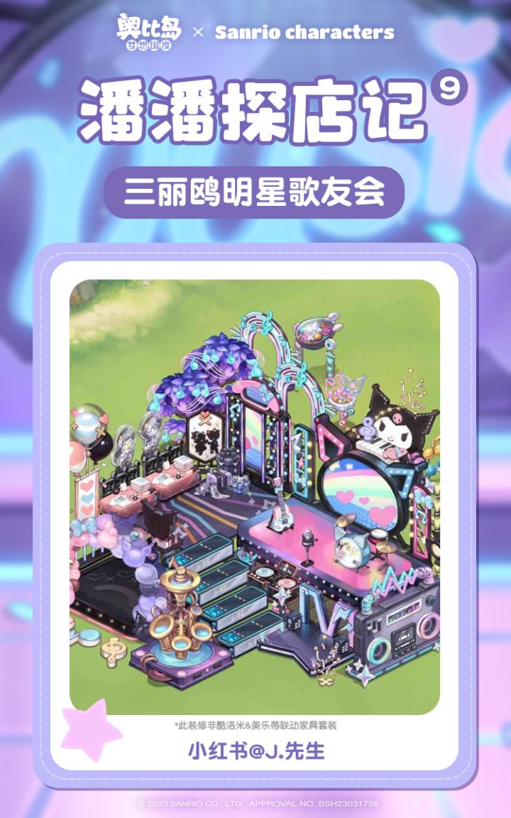由酷洛米和美乐蒂领衔演唱的海岛音乐会,还在火热举办中!你是否也换上三丽鸥明星主题的家装,参与到这场潮流派对中了呢?参加完音乐节,还可以前往偶像别墅,与酷洛米美乐蒂一起享受悠闲的娱乐时光~接下来就跟随潘潘的脚步,去探索全新主题的装修吧~p.s. 下图岛建装修均为使用酷洛米&美乐蒂联动家具套装的拆件搭配而成,非酷洛米&美乐蒂家具联动套装。
