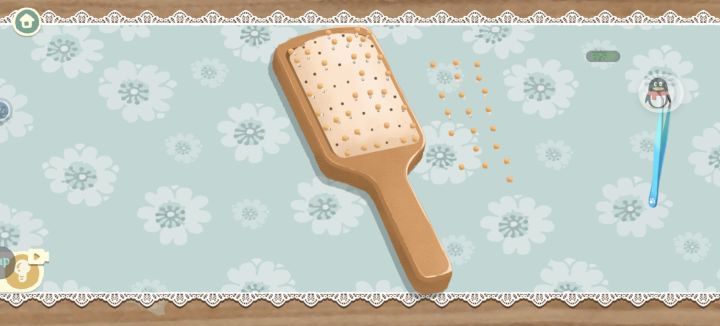梳子这按点点,一定要从最后一颗开始,要装到左上第一个洞,颗粒也要从下往上拿才行