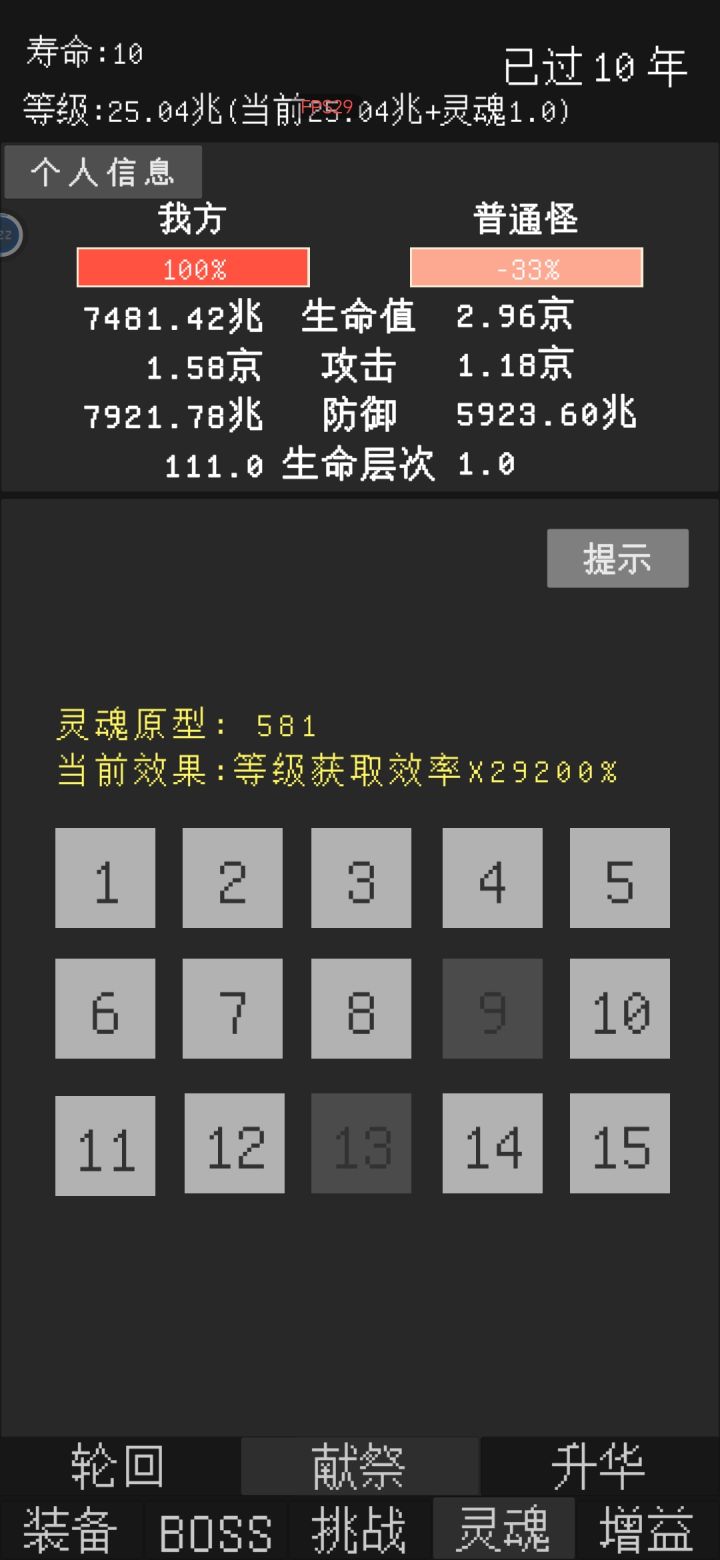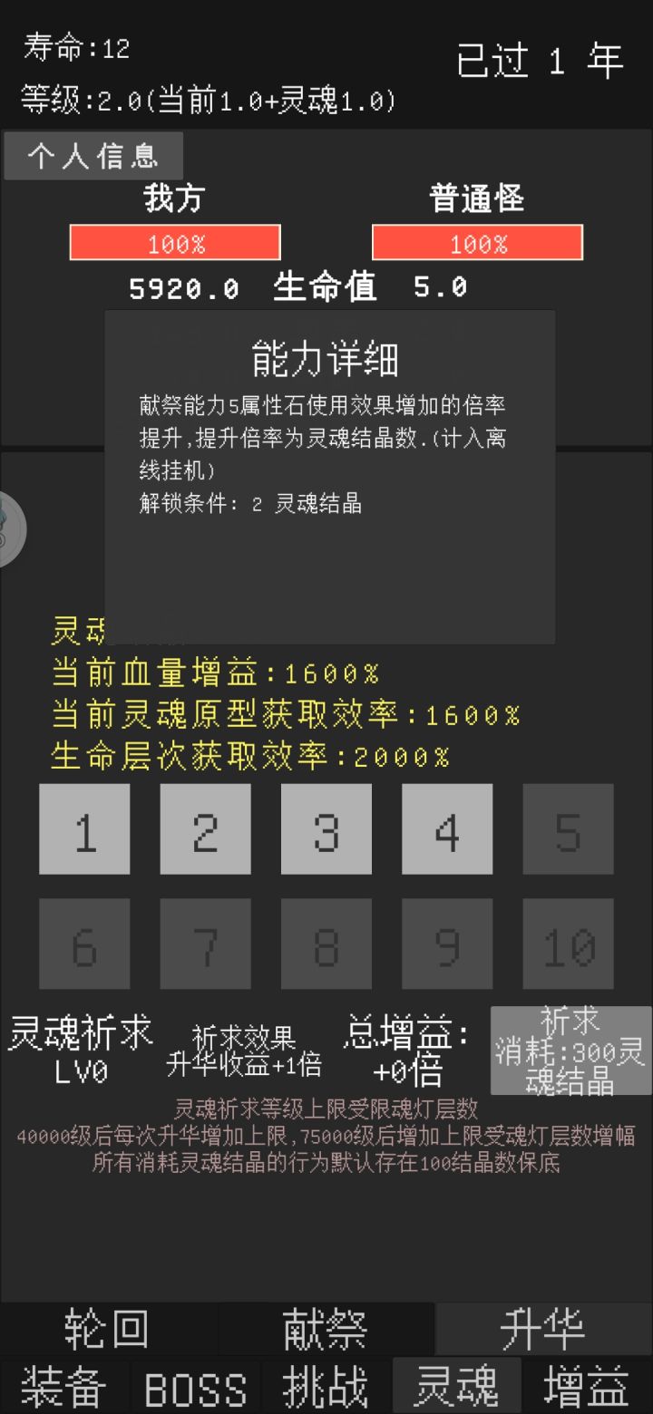 把献祭改成在原有基础上每多献祭一兆,就多一份收益。同时更改一次献祭能获得的增幅从50%改为0.1%甚至更低,也就是说如果我一次献祭一京,按0.1%一兆的增幅来算献祭一京可以获得1000%的收益,就算0.01%每兆也有100%的增幅,大大提高了收益