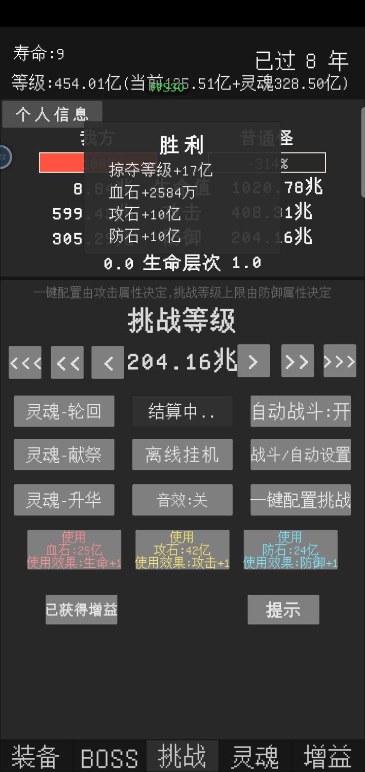 平时挂两三小时宝石加成一万多,挂一晚上才加一千多(都有广告收益)刚刚测试两分钟154场,宝石收益增加13,未乘灵魂结晶数