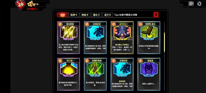 视频讲述了初始卡组和前期推荐核心卡以及原理,文字版大致如下:一、初始9张卡+1张三选一的卡共10张卡组成卡堆,随着得用恢复可以打出对应耗费的卡,本质输入肉鸽类塔防游戏。二、推荐前期核心卡:反弹机关(我习惯性简称弹簧)+尖锐墙刺原因:重力系统,同一代《糖果灾难》,所有怪物都受重力因素影响,因此可以利用地形进行地形杀可以快速秒怪而不浪费费用,为我们过渡到中后期的阵容成型提供有力帮助三、地形&游戏面板介