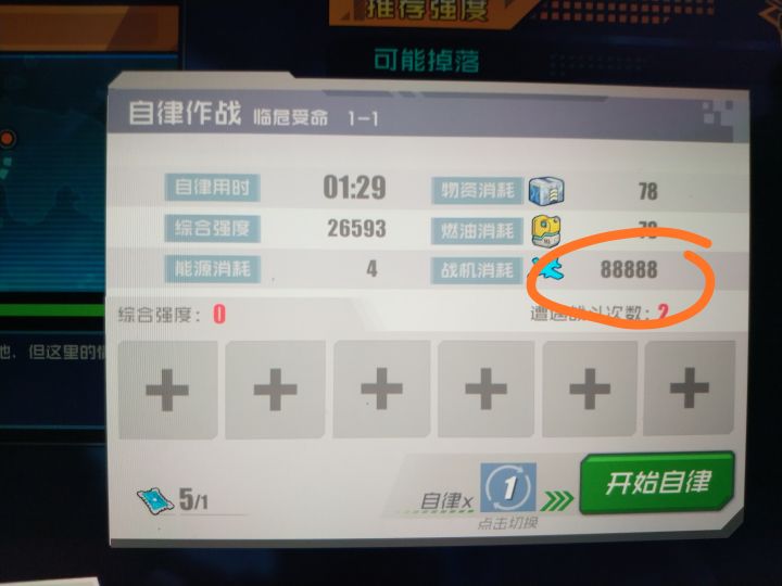 打了下1_1,没有航母的,战机消耗999架,登陆了,去自律,战机消耗88888架…没敢自律…又打了1_2,同队,依然999架,这次没登陆…