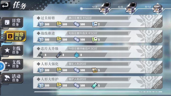 这个是活动任务做完了不显示完成。这个是周任务完成了,上面的宝箱不显示完成。
