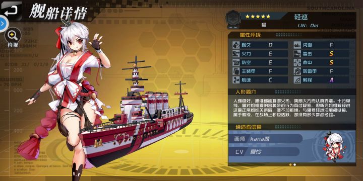 獾是雷巡天花板不多说,雷击系数130%抽到必练,输出主力军最肉最慢最强的战列,没有之一,属性s即为1.3倍效率,火力系数130%航母空大日常操作,火力系数130%装备轰炸机(爆)人手一只,忠犬,火力雷击属性B,系数115%,这只舰的定位也是输出,建议全533鱼(和谐)雷,高装填触发被动伤害,也可以走混伤路线(个人不推荐混伤,别练驱逐舰雷鸣,就是个弟弟)轻巡基佬夫,前期作用不大,据说后期用处