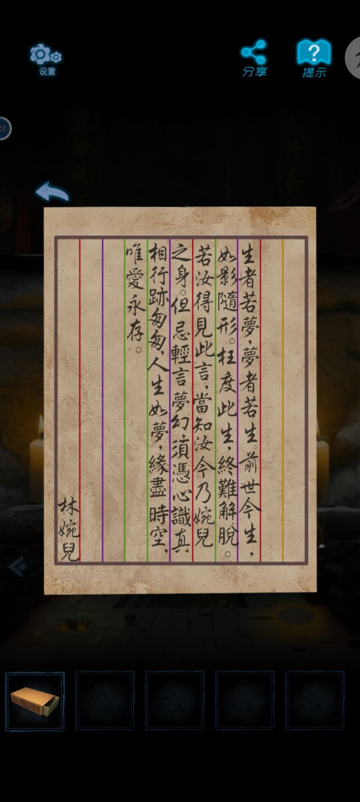 1.前两张图片是一个谜题,第一张图片我怎么看都是紫色,第二张图怎么看都是蓝色,这个颜色不能这么对不上吧。2.后两张图片是一个谜题,没看到提示,也没看到对应位置,完全不知道该怎么解,又不想跳过。建议加上解法说明,自己还能试着解一解。3.关于配音,AI配音听着是真不舒服,不如不配。4.点触不灵敏,点后退键有时需要点好几下才有反应。