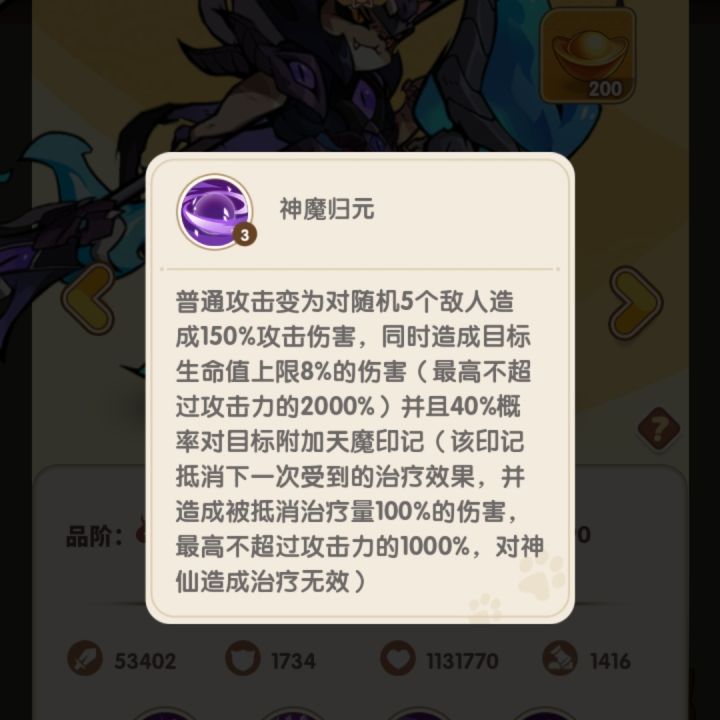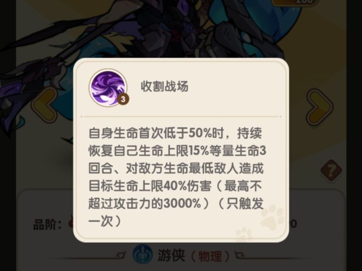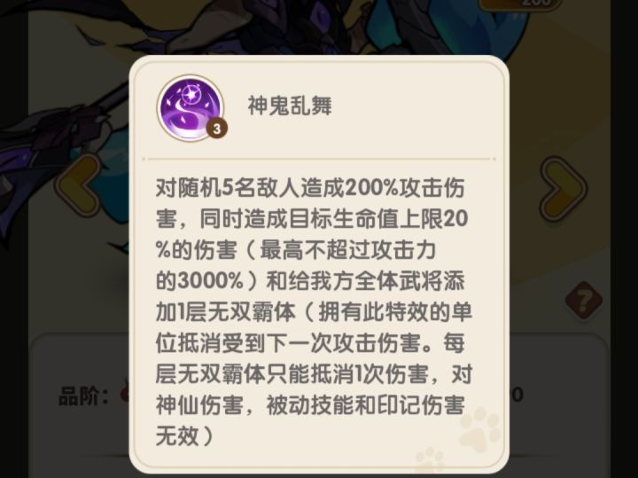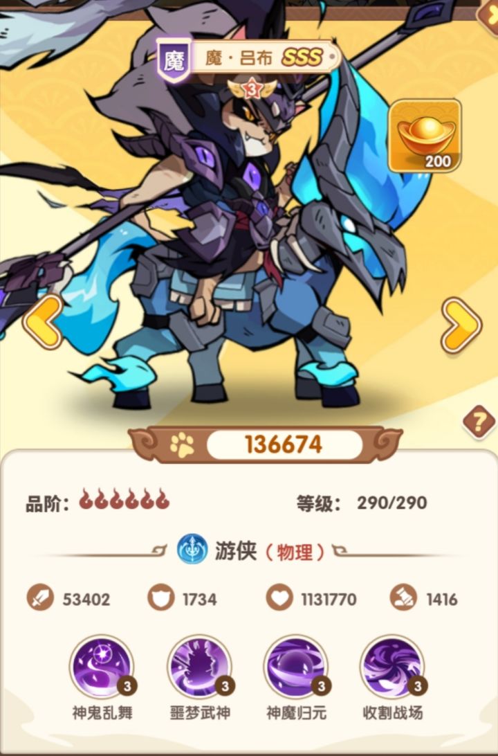 这次更新了三位魔阵营角色,魔吕布,魔吕玲绮,灵韵貂蝉。另外增加了战法系统,培养思路进一步复杂化,大佬和平民差距拉大,之前的减伤版本多元化,有了复活机制(但没有复活角色)魔吕布的全体无敌一回合和灵韵貂蝉的回能可以联动,收割技能只生效一次,看来还是不敢太逆天(接近半血斩杀),感觉还行,就是不清楚实际出场效果怎么样(-o-)/#浅评一下