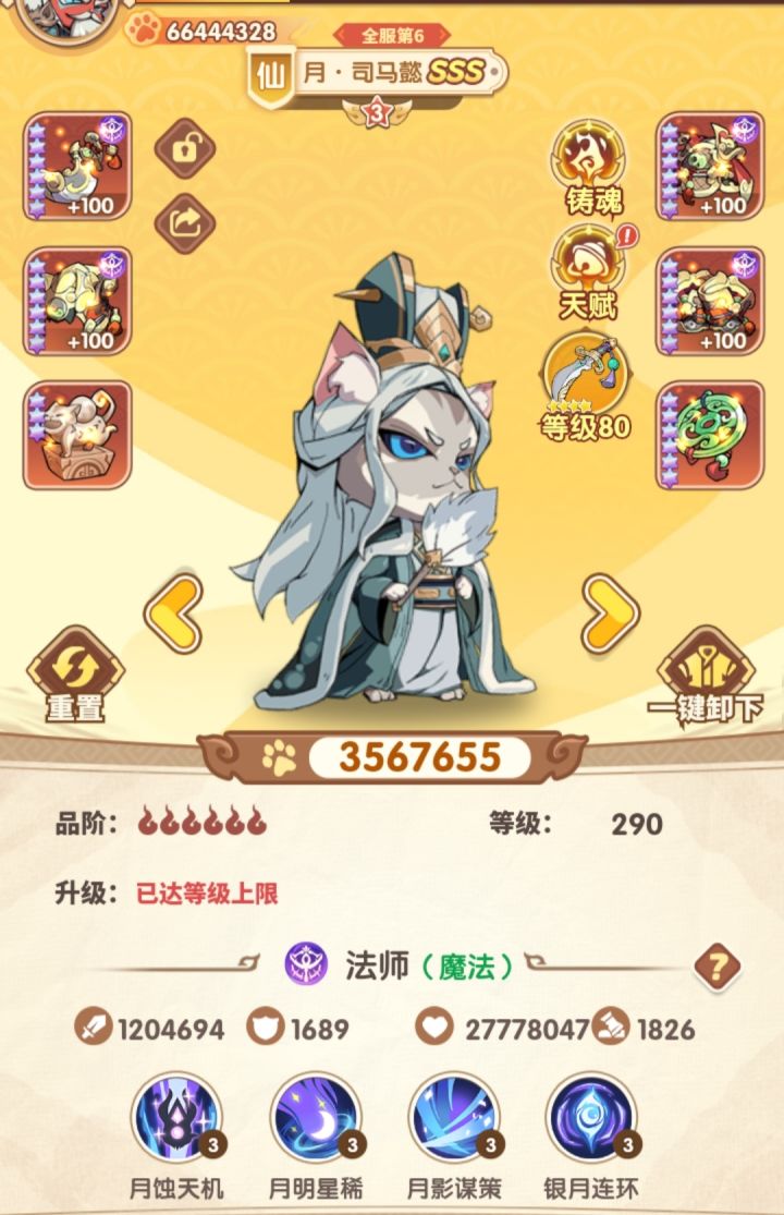 话说但凡你提前一天上通告,我都会囤够280。本来给魔司马囤的金券,没成想新出了月司马,仙阵营控制法师,可以当前排,速度也挺快,主要是第四技能看描述是己方队友行动后就可以回百分比血量,挺强的。仙周瑜比周瑜强一些,除了百分比回血,又是仙阵营,还跟仙诸葛有组合技,可惜银券差一轮,希望策划别整得跟马超一样,就来一轮游。#游戏日常 #游戏日常 #