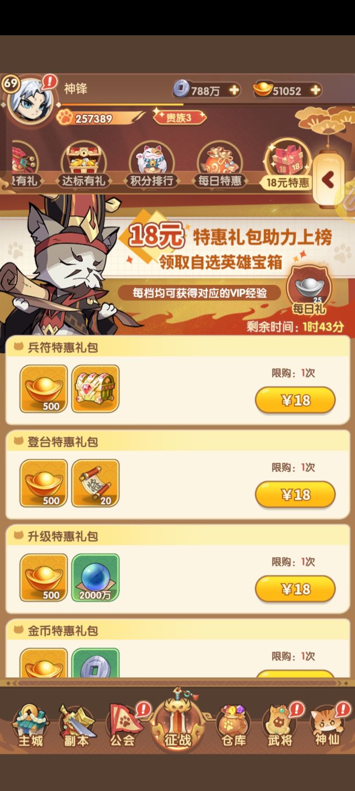 情况如下图,今天充值一个18元招将令礼包,扣我两次18元,请解决!
