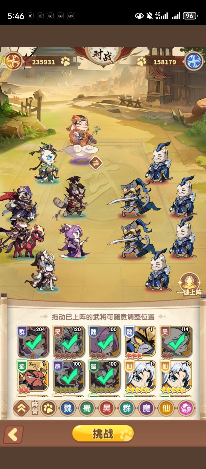 #猫三国晒阵容 目前最强阵容,才入坑几天