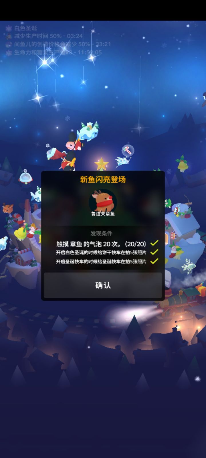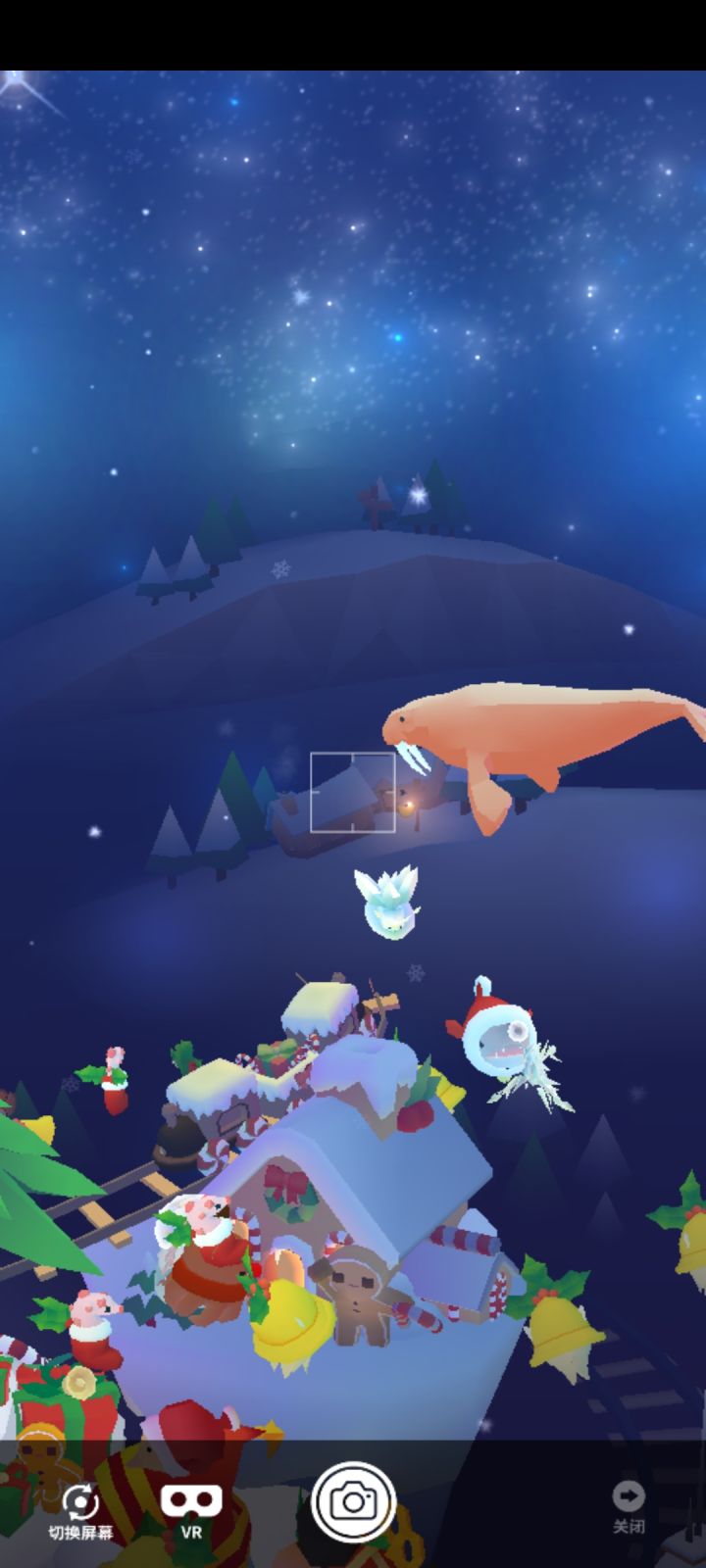 鲁道夫章鱼 需要在开启白色圣诞魔法和圣诞快车魔法时给两个火车拍照 点拍照以后转到背面 圣诞树后面的小火车是饼干火车 下面的大车是圣诞快车圣诞鱿鱼 左侧靠前小屋是图五 左前方那一排小屋 右侧靠后小屋是图六圣诞树右后面山丘上的小屋PS:建议两个魔法分着开 开白色圣诞拍小火车 开圣诞快车拍大火车 要在上一个魔法结束后再拍下一个 我前面两个魔法一起开没拍出来