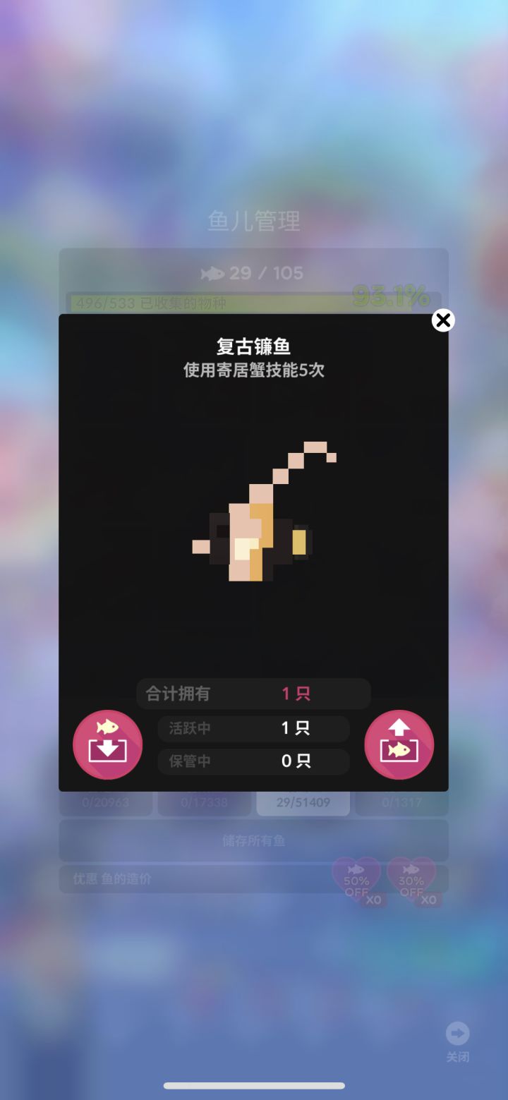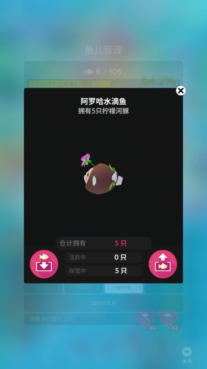 新版本已经发布了,安卓党可以在官方群下载,ios党的请耐心等待(就当让安卓党帮忙避雷了)。除了更新新活动鱼和复刻海盗鱼外,本次更新修复了淡水馆万圣馆圣诞馆的管理鱼bug,并且大幅缩短农场材料产出时间,农场材料也可以在商店用珍珠直接购买。活动鱼的提示之后再发。先祝大家玩得开心。