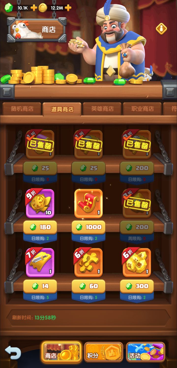 更新一个小号,主打一分不充,苟住,资源绝不浪费第一天钻石消耗点:1.商城打折25💎的召唤卷,信物卷2.8折10个信物卷必须秒3.缝8礼包都买,屯屯屯4.前期缺金币,买买买6.前期开位置 快速推图 直接买锤子(可以不买,就是节奏慢点)7.挂机 直接拉满 (等级影响推图,正常情况直接拉满,如果后面钻石不够,可以只拉200钻以前的)今日零氪汇报截图如下:召唤卷屯了113.信物屯了5