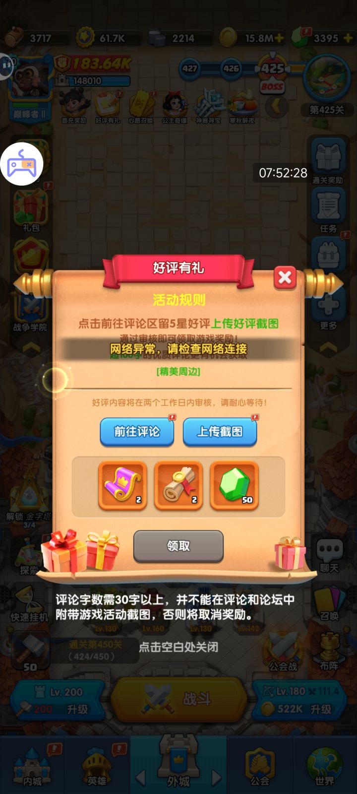 好评有礼,一直网络异常。红点又消不掉,奖励鸡肋。看着红点难受。有没有人处理#怪物联萌