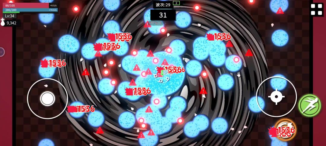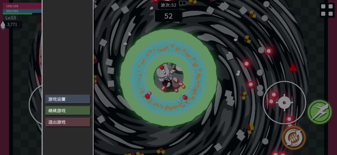 使用打法陀螺 这样手机不这样手机不容易卡比较流畅而且捡那个晶石也只需要在尾声的时候,在周围小转一圈就减晶石了,不需要到处跑解放双手需要注意的是,那个旋转的那个绿色的那个修饰节点需要放在那个最开头放在后边不会生效,增加移速,移速加成攻击,时间推移逐渐加速,击杀敌人延长时间,注入能量,节省能量,再来三发。 还有那个黄色的节点一变五无限套娃