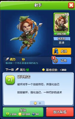亲爱的召唤师们大家好呀!又到了我们的英雄档案时间了,这次给大家带来的英雄名称为射手,嗯没错就叫射手。她同样也是新手英雄之一,开局就给,那让我们看看她会给我们带来怎样的表现吧。 【英雄介绍】绿色阵容的射手,她有着黄褐色的头发,一身绿袍像是森林中的巡林官似的。她踩着灵活的步伐,手持长弓,极为擅长远程攻击破环。她不停的游走于战场之上,小心了,她不会放过任何破坏的机会。普通品质的射手,初始等级为1