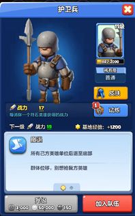 亲爱的召唤师们大家好,今天是我们的英雄档案时间。这次给大家带来的英雄是在2段青铜段位解锁的英雄护卫兵,平时开宝箱就能获得,那就让我来介绍他是一个怎样的英雄吧。 【英雄介绍】蓝色阵容的护卫兵,是一位为人正直的人,他尽忠职守,时刻坚守在自己的岗位上,但从他那弯成拱桥形状的嘴角,不难看出这多少有点不情愿的样子。一旦收到撤退的命令,那他绝对是跑的最快的一个。嗯~战略性撤退,对吧!普通品质的护卫兵,
